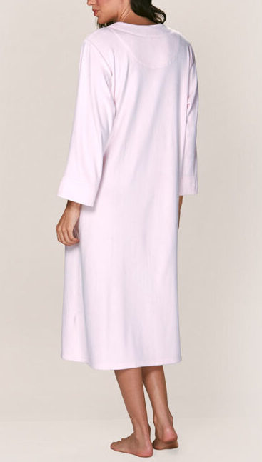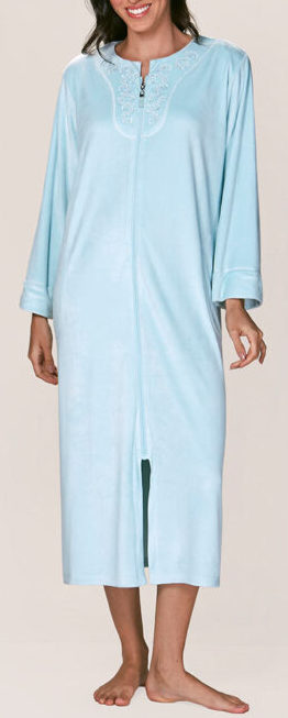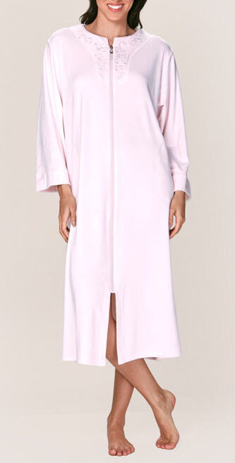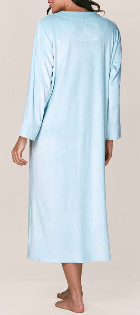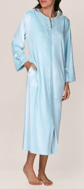 Bata larga de tela elasticada, suave al tacto con cierre frontal. Incluye bolsillos laterales y delicados bordados en zona del cuello dando un toque elegante. Su diseño suave y cómodo es perfecto para los días fríos.
