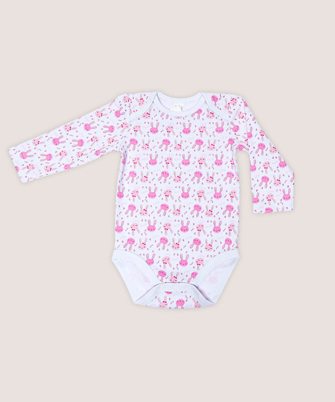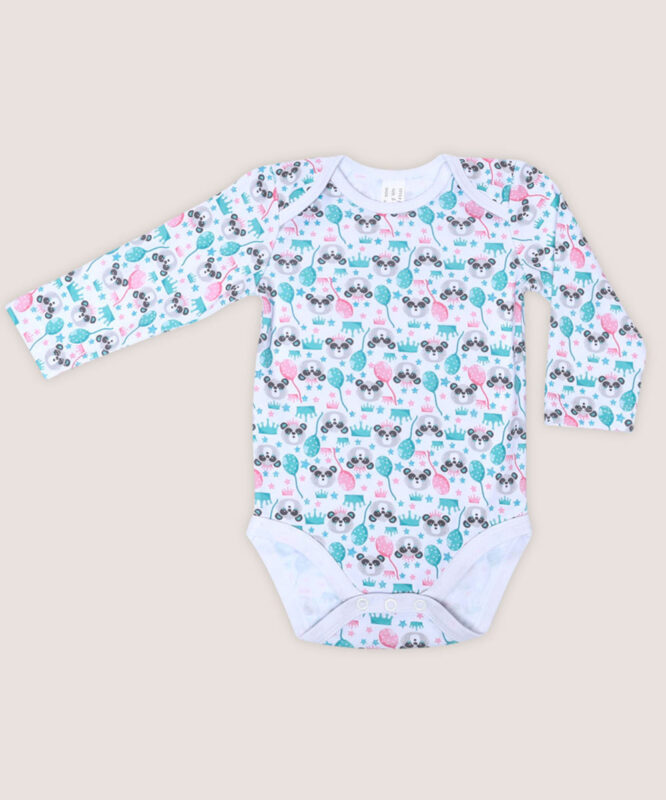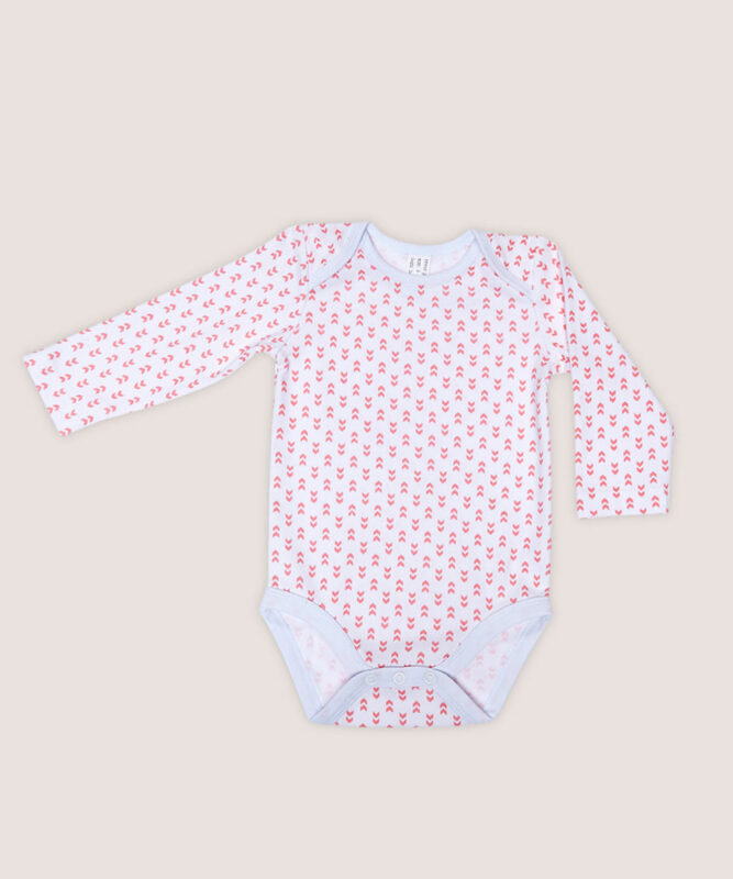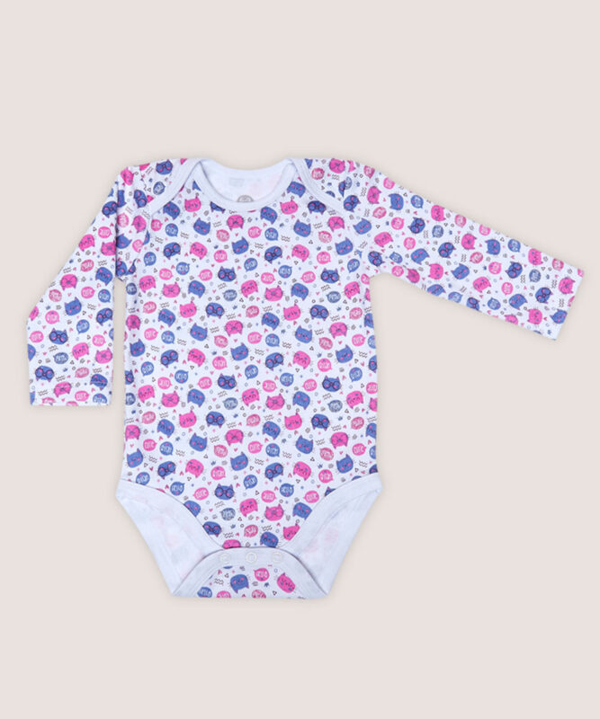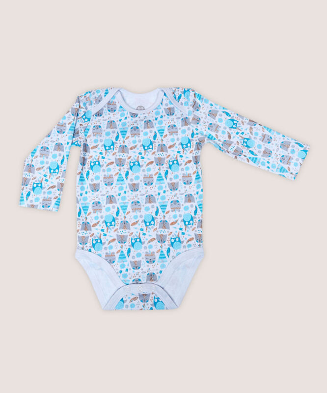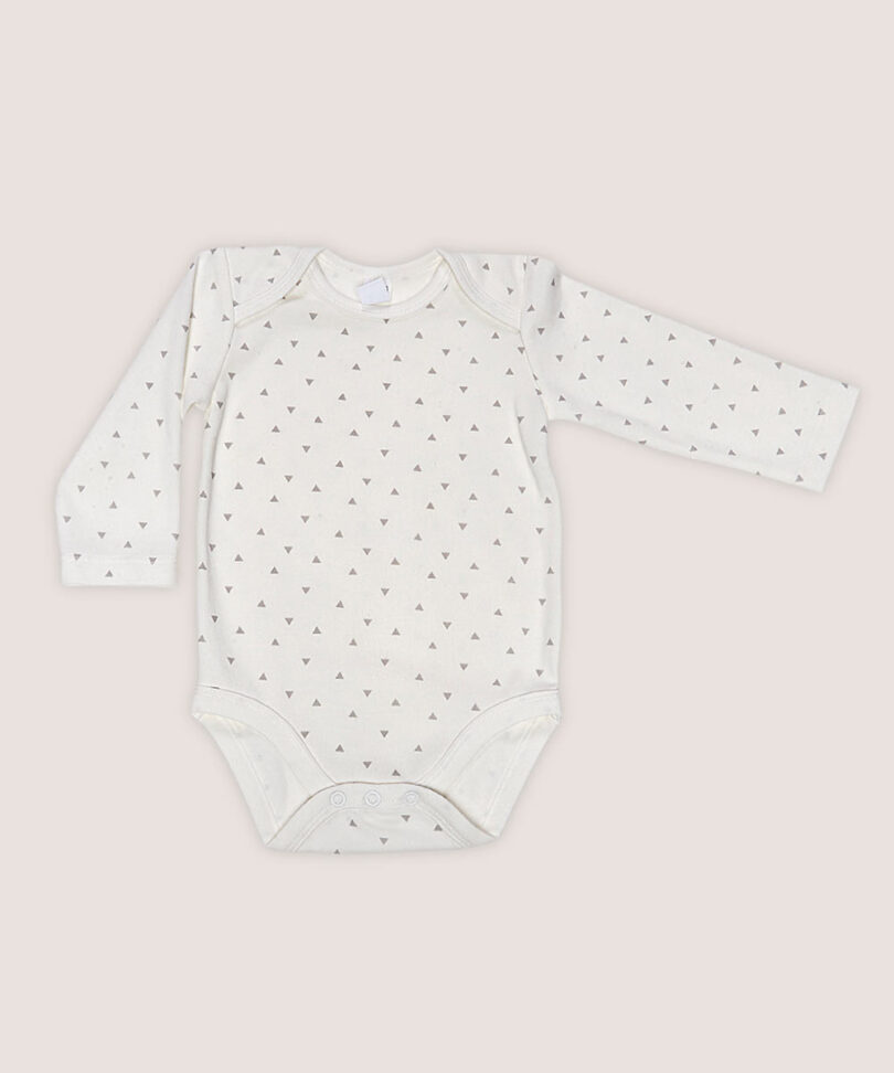 Body de manga larga, ideal para mantener al bebé cómodo todo el día. Su diseño cruzado en hombros y broches inferiores facilitan el cambio. Suave, respirable y con estampado minimalista, perfecto para combinar con cualquier outfit.