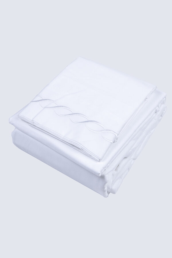 Pack de sábanas bordadas confeccionado en tela resistente y suave, adecuado para uso durante todo el año. Incluye sábana bajera, sábana superior y fundas de almohada, ofreciendo durabilidad, fácil mantenimiento y un acabado elegante que mejora la estética de la cama. 1,5 plazas.
