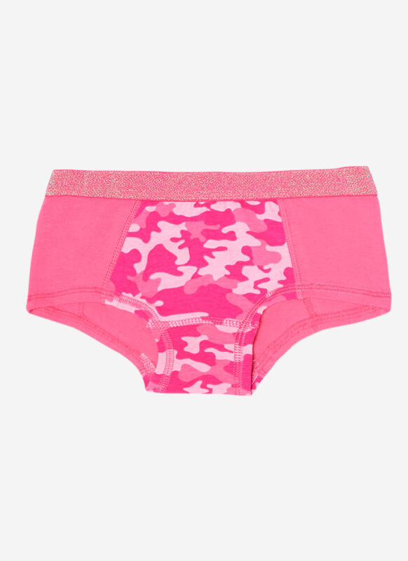 Pantaleta infantil de algodón spandex y estampado con elástico glitter en contraste. ¡Úsala como conjunto con su top AS-201!