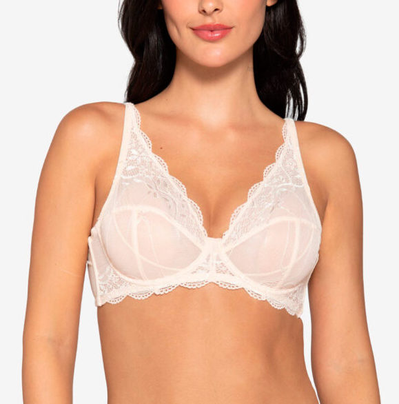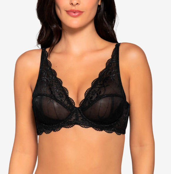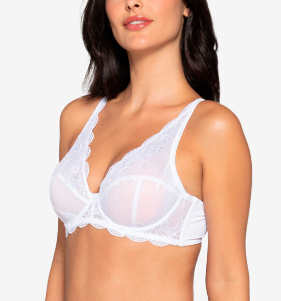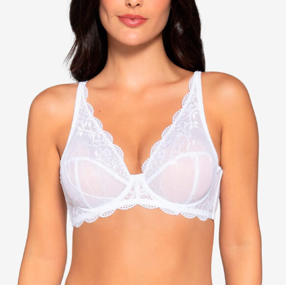 Sostén con delicado encaje floral, diseñado para ofrecer soporte suave y un ajuste femenino que realza tu silueta de manera sofisticada. Encuéntralo en los colores clásicos, Blanco, Negro, y Nude. Copa B.